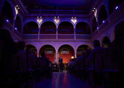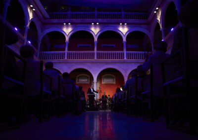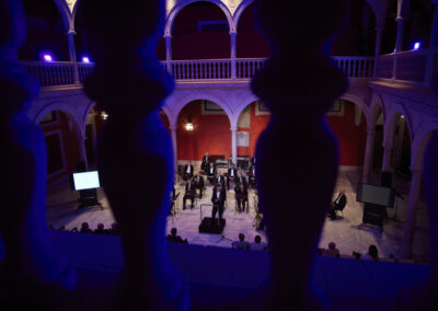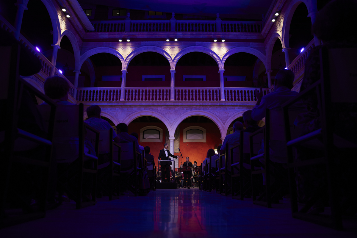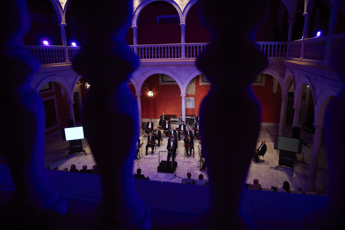 El pasado sábado 27 de septiembre a las 20:30 horas, tuvo lugar en el Patio de la sede de la Fundación Cajasol, con numerosa participación de hermanos y público, uno de los actos culturales organizados con motivo del 150 aniversario fundacional: la Conferencia-Concierto “Enigmas de las marchas de Antonio Pantión”, a cargo de D. Francisco Javier Gutiérrez Juan y la Banda Sinfónica Municipal de Sevilla.