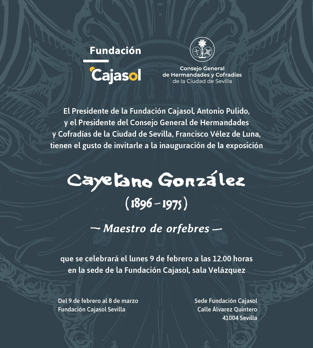 La sede de la Fundación Cajasol, en la calle Álvarez Quintero, acoge del 9 de febrero al 8 de marzo la exposición «Cayetano González 1896-1975. Maestro de Orfebres», un recorrido por la obra del insigne orfebre sevillano con motivo del 50 aniversario de su fallecimiento.